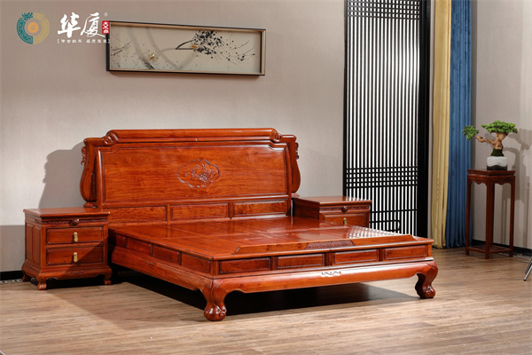 一張工藝精良的緬甸花梨《玲瓏大床》,圍合出一方獨屬于自己的靜謐天地。