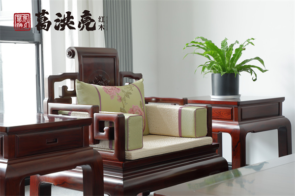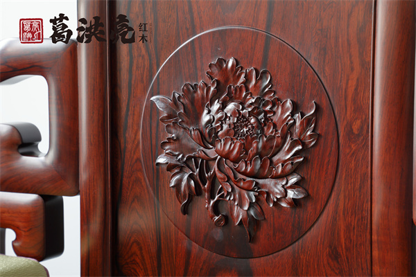 或許,僅在沙發(fā)搭腦處輕雕卷書靠頭,勾勒出文人風(fēng)骨;或許,于椅具背板一隅精琢國花牡丹,暗喻富貴綿長。葛洪亮紅木的家具在沉穩(wěn)厚重之中,透出一股清雅、疏朗的書卷氣,這正是明式家具穿越時空的魅力所在。