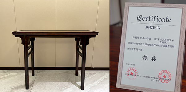 今年,東邦紅木作品《田家青款裹圓牙子大畫案》榮獲“2015浙江歷史經(jīng)典產(chǎn)業(yè)創(chuàng)新創(chuàng)意作品展”傳統(tǒng)工藝美術(shù)類銀獎(jiǎng)。市場(chǎng)榮譽(yù)與專業(yè)認(rèn)證并存,共同構(gòu)筑了東邦紅木“匠人匠心”與“領(lǐng)軍品牌”的堅(jiān)實(shí)根基。