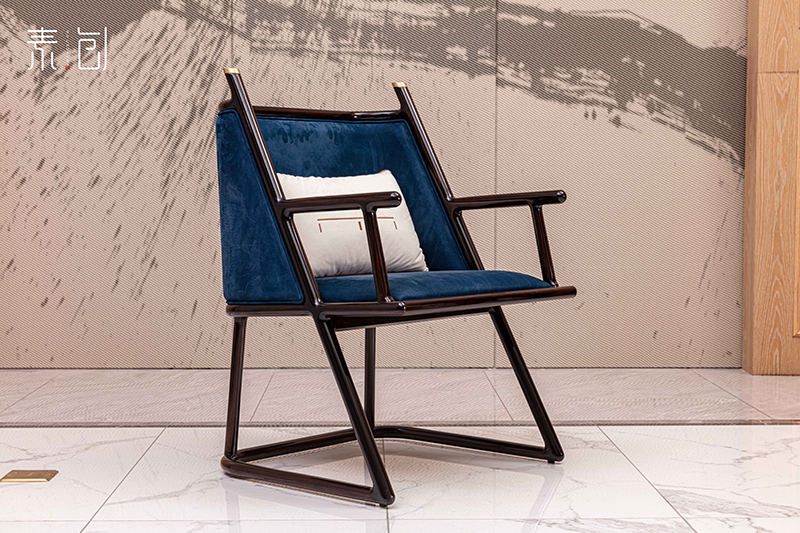 設(shè)計深諳平衡之道,深藍色布藝單椅的加入,不僅與條紋烏木的色彩形成了恰到好處的冷暖對比與質(zhì)感呼應(yīng),更在沉穩(wěn)基調(diào)中注入一抹靜謐與活力。所有設(shè)計均嚴(yán)格遵循人體工學(xué),確保每一處承托都恰到好處,讓“坐著舒服”成為一種日常的奢華享受。
