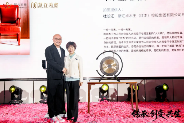 在慈善晚宴拍賣環(huán)節(jié)中,卓木王總裁杜長江攜“人大椅”參與競拍。“人大椅”以其獨特的設(shè)計理念和精湛工藝,吸引了眾多與會嘉賓的目光。競拍現(xiàn)場氣氛熱烈。