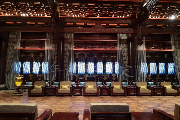 年年紅·金典在福州八閩古城項目中的實踐,完美詮釋了“跳出單一家具生產(chǎn)框架”的高端整裝服務理念。這里不僅是古建修繕,更是整體空間營造。從建筑內部木結構、裝飾面,到與之相配的中式陳設,年年紅·金典提供了從設計、生產(chǎn)到安裝的一體化解決方案。他們將對紅木文化的理解,使清徽樓室內空間既保留了歷史建筑的莊嚴格局,又賦予了符合當代審美與功能的舒適與奢華。