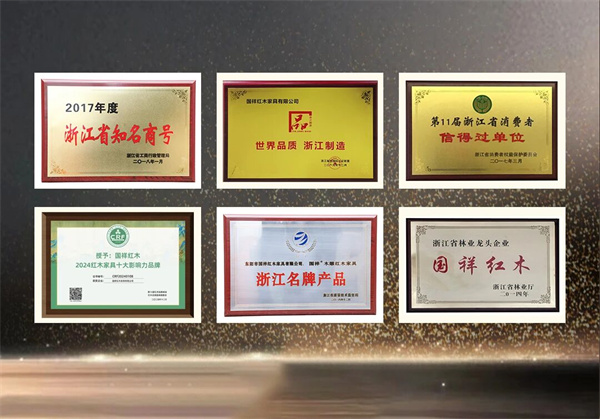 在張國強的帶領(lǐng)下,近年來,國祥紅木先后斬獲了紅木家具十大影響力品牌、浙江省知名商號、浙江省名牌產(chǎn)品 、浙江省林業(yè)重點龍頭企業(yè)、浙江省消費者信得過單位 、浙江省家具行業(yè)先進企業(yè)等百項榮耀,彰顯其卓爾不凡的領(lǐng)導力。