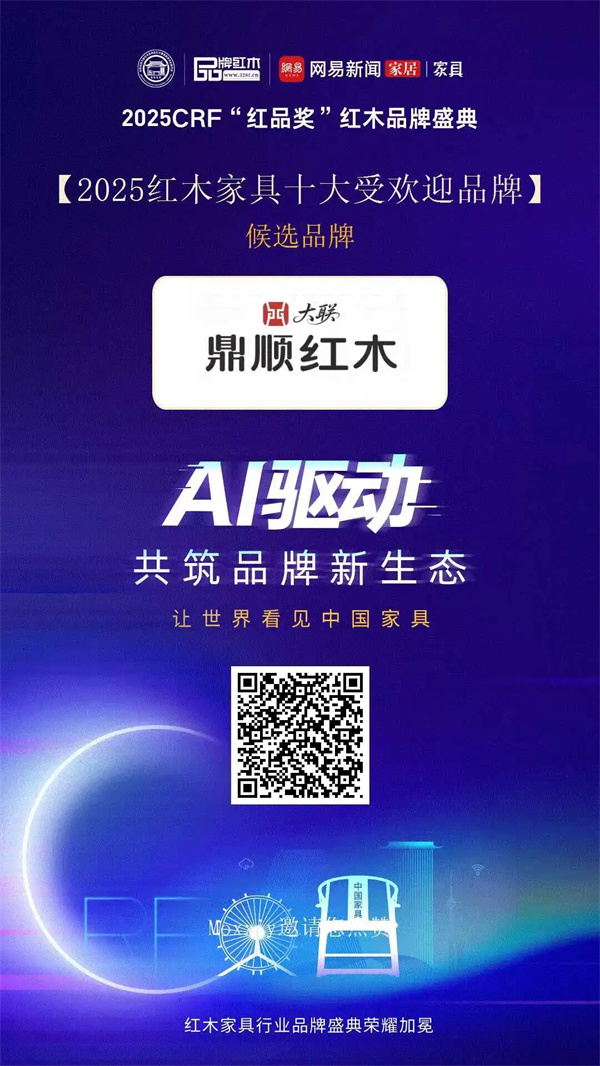 時(shí)光淬煉匠心,品質(zhì)鑄就傳奇。在紅木家具行業(yè)蓬勃發(fā)展的浪潮中,鼎順紅木以卓越實(shí)力與匠心堅(jiān)守,成功入圍2025紅木家具“紅品獎(jiǎng)”四大獎(jiǎng)項(xiàng)提名!