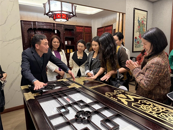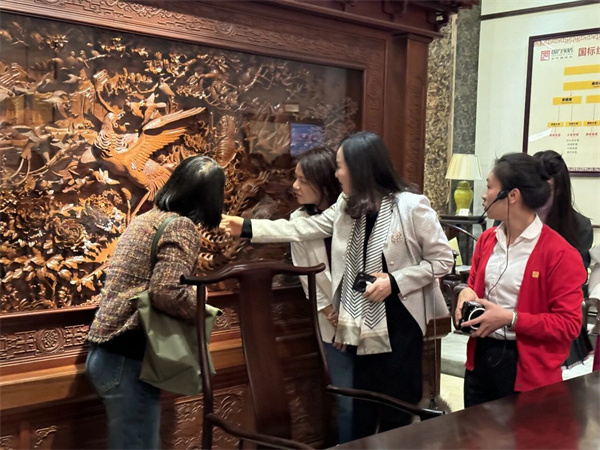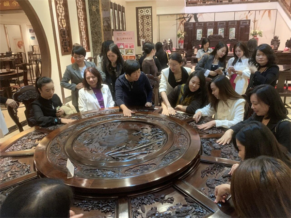 在工藝互動(dòng)區(qū),女企業(yè)家們通過親手拆裝,感受了榫卯結(jié)構(gòu)的精妙;在參觀了國方家居獲獎(jiǎng)雕刻工藝作品后,感受到了傳統(tǒng)手工雕刻的專注和精巧,大家在一室的在木韻芬芳中,對(duì)“匠心”二字有了更切身的體會(huì)。