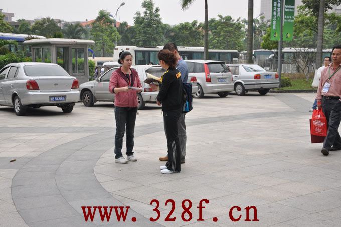 由于東莞的展會所在的展館場地巨大,出口很多,為了加大宣傳力度,我們除了在相關(guān)酒店、固定展點(diǎn)擺放書刊之外,還在展出紅木古典家具的幾個(gè)展館門口流動(dòng)宣傳派發(fā)。