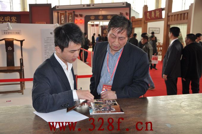 在大涌的展會上,我們遇到了故宮博物院科技部主任曹靜樓先生,在看過我們的書刊之后,曹先生對我們的工作給了很高的評價,并在價值千萬的獨板翹頭案上為我們的書刊題字。這是對我們工作莫大的肯定。