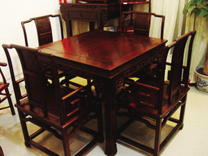 非常實用的五件套紅酸枝八仙桌,材料精選自東南亞熱帶雨林地區(qū)老撾紅酸枝,其木質(zhì)堅硬、細膩、柔滑,木料為深紫紅色,能沉于水中,經(jīng)久耐用,具有很大的升值空間,同時用料講究,少量飾紋流露樸實無華、蘊含淳樸之風,簡樸明快成自然之趣。
