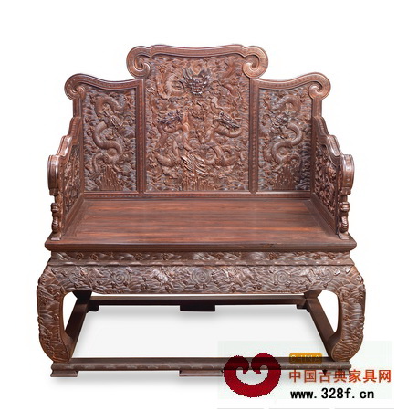 09年10月,中國乾隆皇帝的一尊紫檀“真龍”寶座在拍賣會上拍出了八千多萬港幣的天價,震驚了整個紅木圈。而這樣的“龍椅”,波記也有一座。這尊“龍椅”制作于三年前,選用珍貴的小葉紫檀作為原材料,這也注定了其身價必定不菲。寶座除了坐板為光面之外,其余部分都雕滿了花紋。寬闊的椅背被分隔為三個部分,正中是一條騰空盤旋的巨龍,龍頭正面向外,龍目炯炯,龍須飛揚,威嚴霸氣頓生。巨龍的兩側(cè)盤旋著兩只小龍,都朝向巨龍,似護衛(wèi)又似膜拜,更顯正中巨龍之尊貴。兩側(cè)的扶手和椅腿上均雕刻著圓形的祥瑞圖騰,簡單的圖形即填補了空白,又巧妙地形成了真龍圖案的底色,不顯得喧賓奪主。寶座的邊沿以柔滑的曲線勾勒,盡頭以回旋的園包裹,為寶座的霸氣增添了一抹引人親近的柔和。這尊寶座雖不曾為任何一個帝王所有,但其仿佛就是為天之驕子而存在,那種渾然天成的氣勢也絕非一般人所能駕馭。